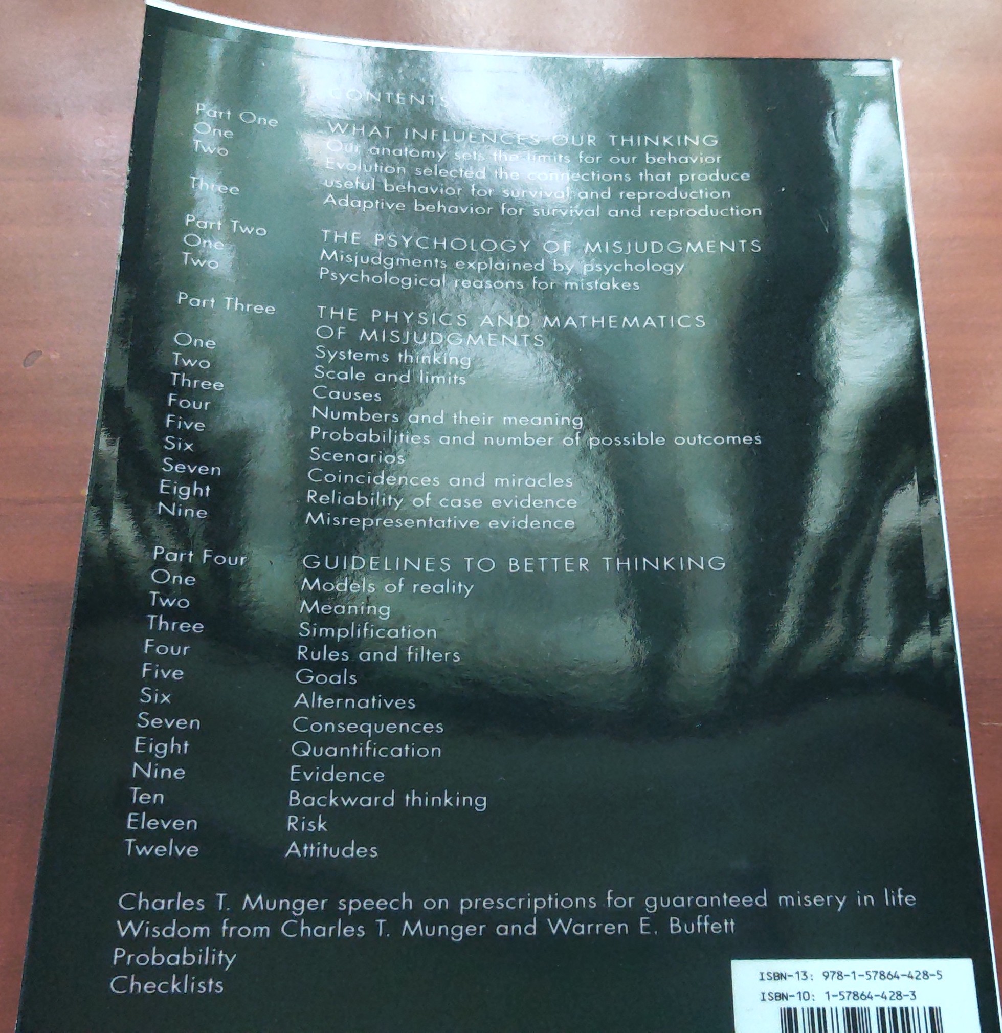 This book focuses on how our thoughts are influenced, why we make misjudgments and tools to improve our thinking. If we understand what influences us, we might avoid certain traps and understand why others act like they do. And if we learn and understand what works and doesn't work and find some framework for reasoning, we will make better judgments. We can't eliminate mistakes, but we can prevent those that can really hurt us.